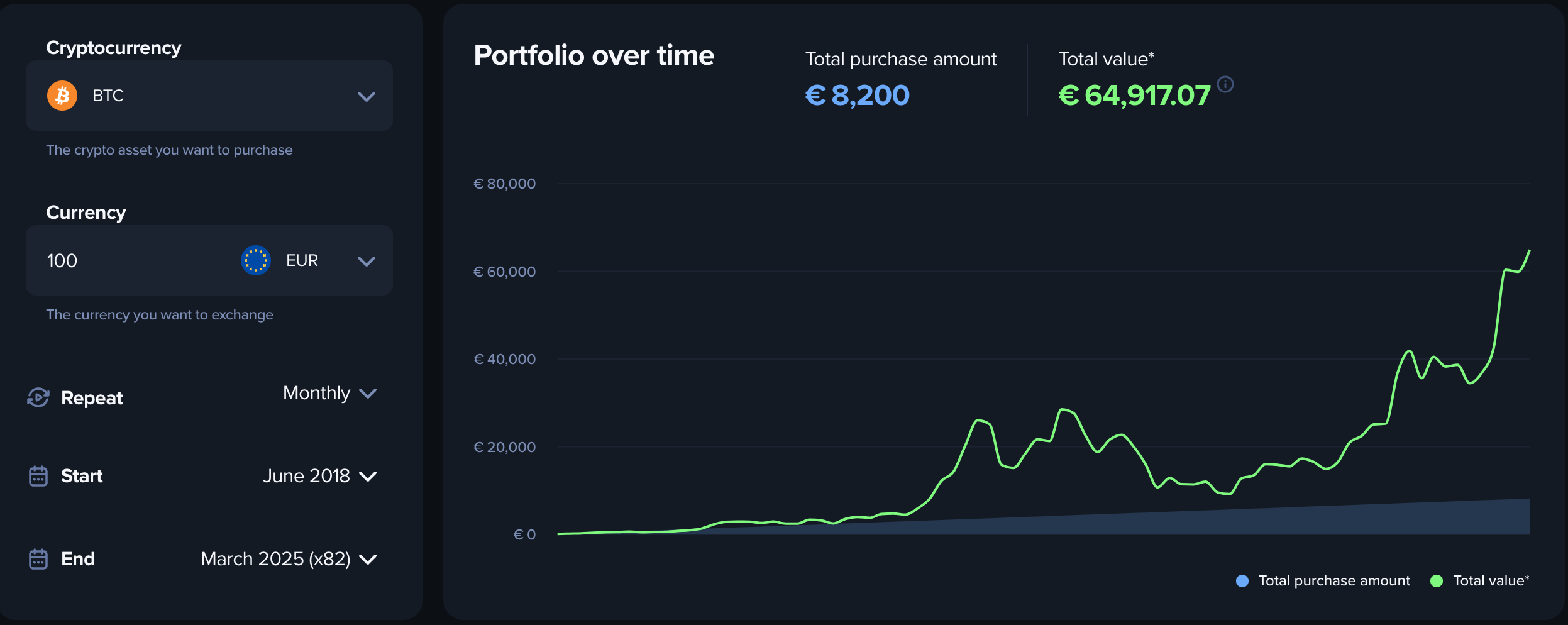 Het principe van DCA is dat u uw investering spreidt over meerdere momenten. Op deze manier heeft u minder last van extreme koerswisselingen. Gelooft u dat bitcoin op lange termijn in waarde blijft stijgen, en kunt u maandelijks wat opzij leggen? Dan is dit dus een prima strategie.